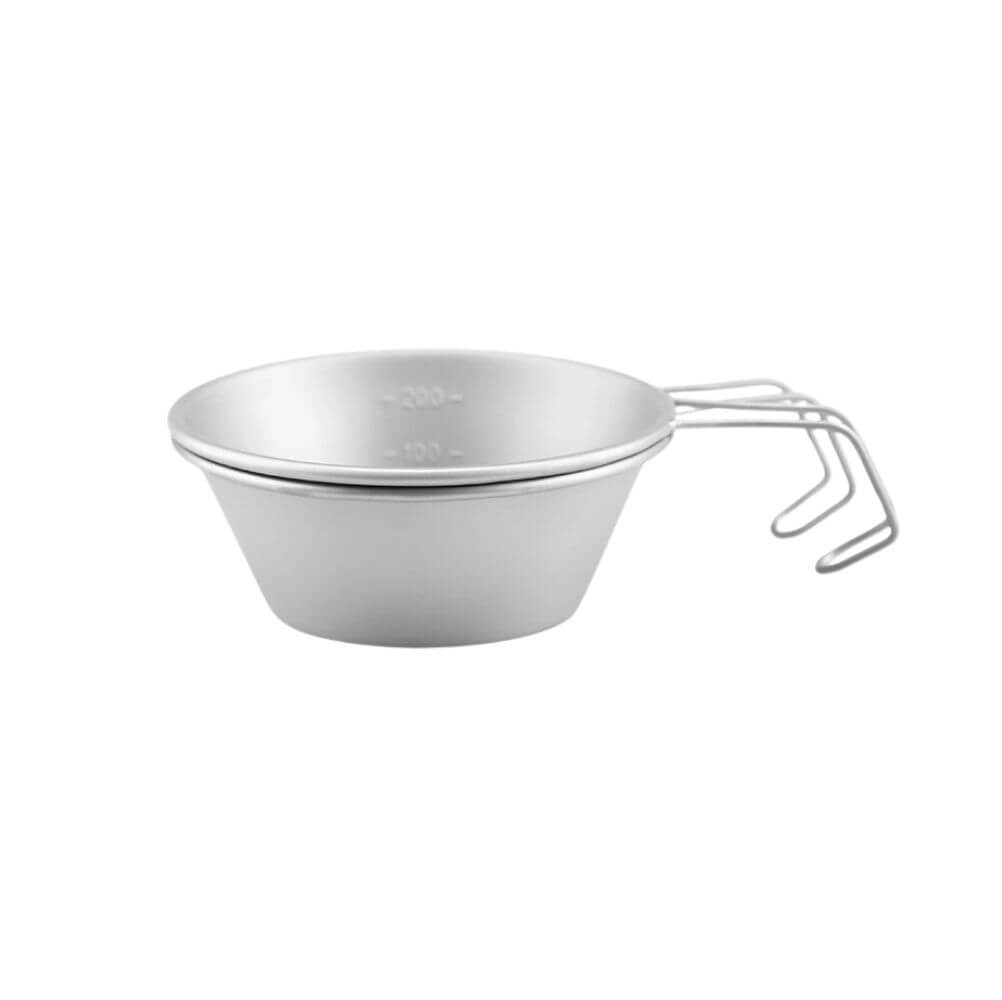 Изделия изготовлены из пищевой нержавеющей стали марки 304. Этот материал отличается высокой коррозионной стойкостью, долговечностью и химической инертностью – он не вступает в реакцию с продуктами питания и не изменяет их вкус даже при длительном контакте. Широкая форма и низкие стенки позволяют удобно употреблять напитки и полноценные блюда. Конструкция подразумевает возможность укладки чашек друг в друга, что обеспечивает компактность при транспортировке. Стальная ручка специальной формы позволяет надежно удерживать посуду или подвешивать ее на карабин к просушиванию рюкзака.