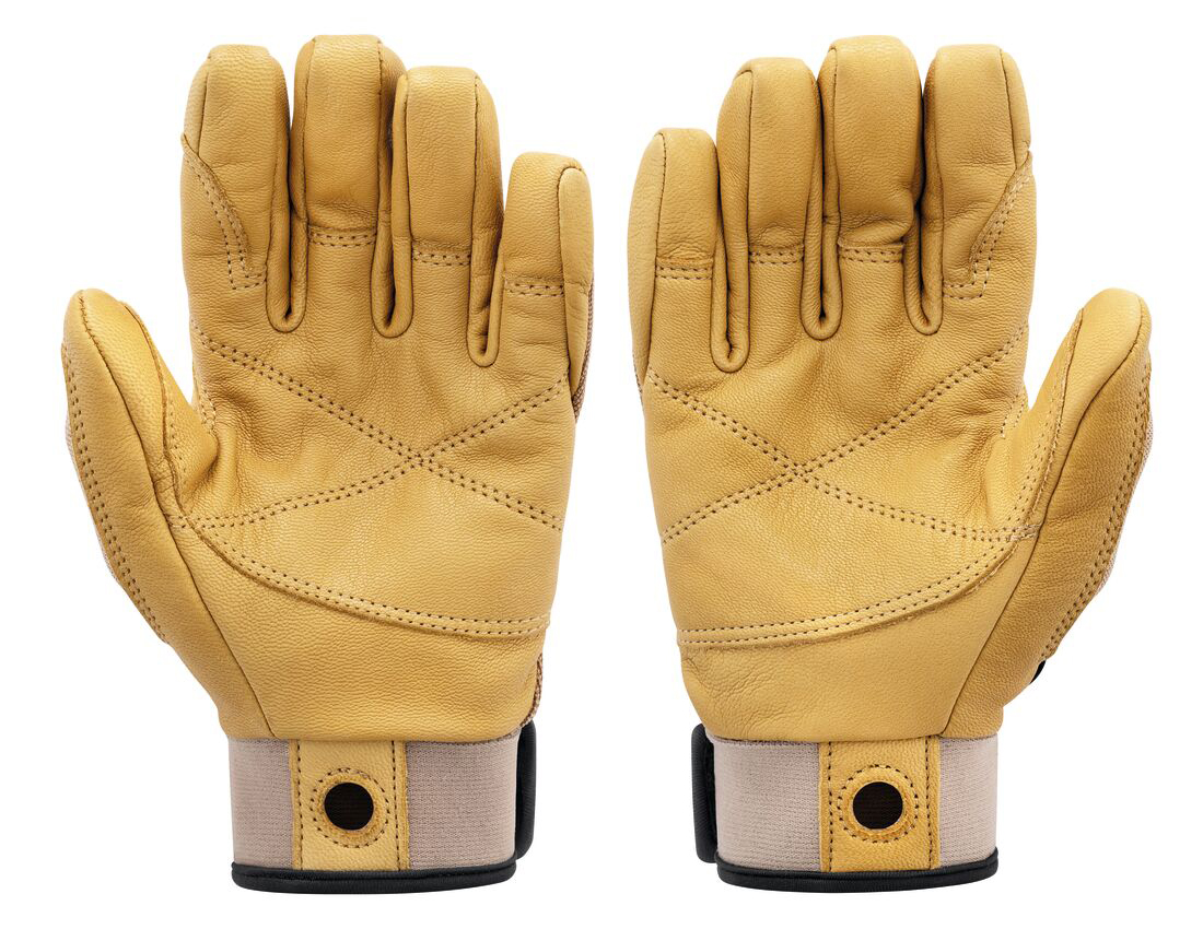 • Двойной слой кожи на ладони и зонах повышенного износа – для длительной службы при работе с веревкой.
