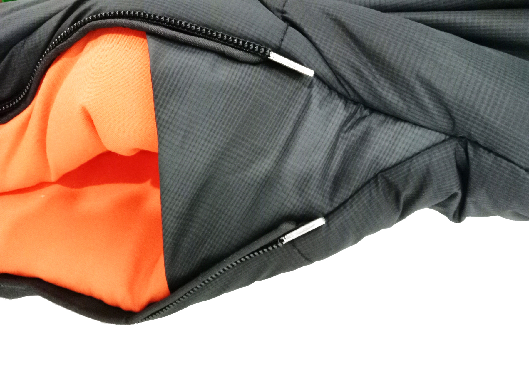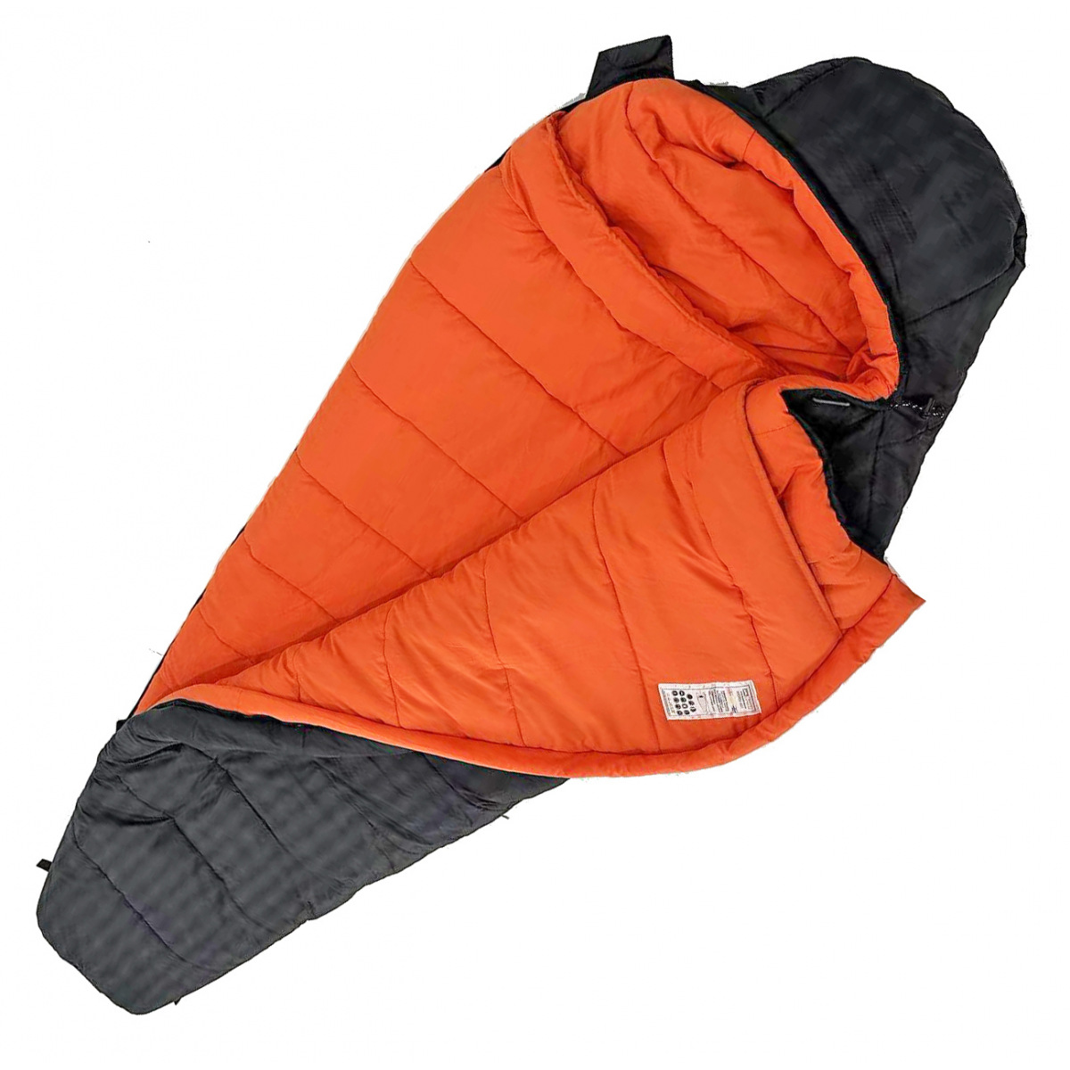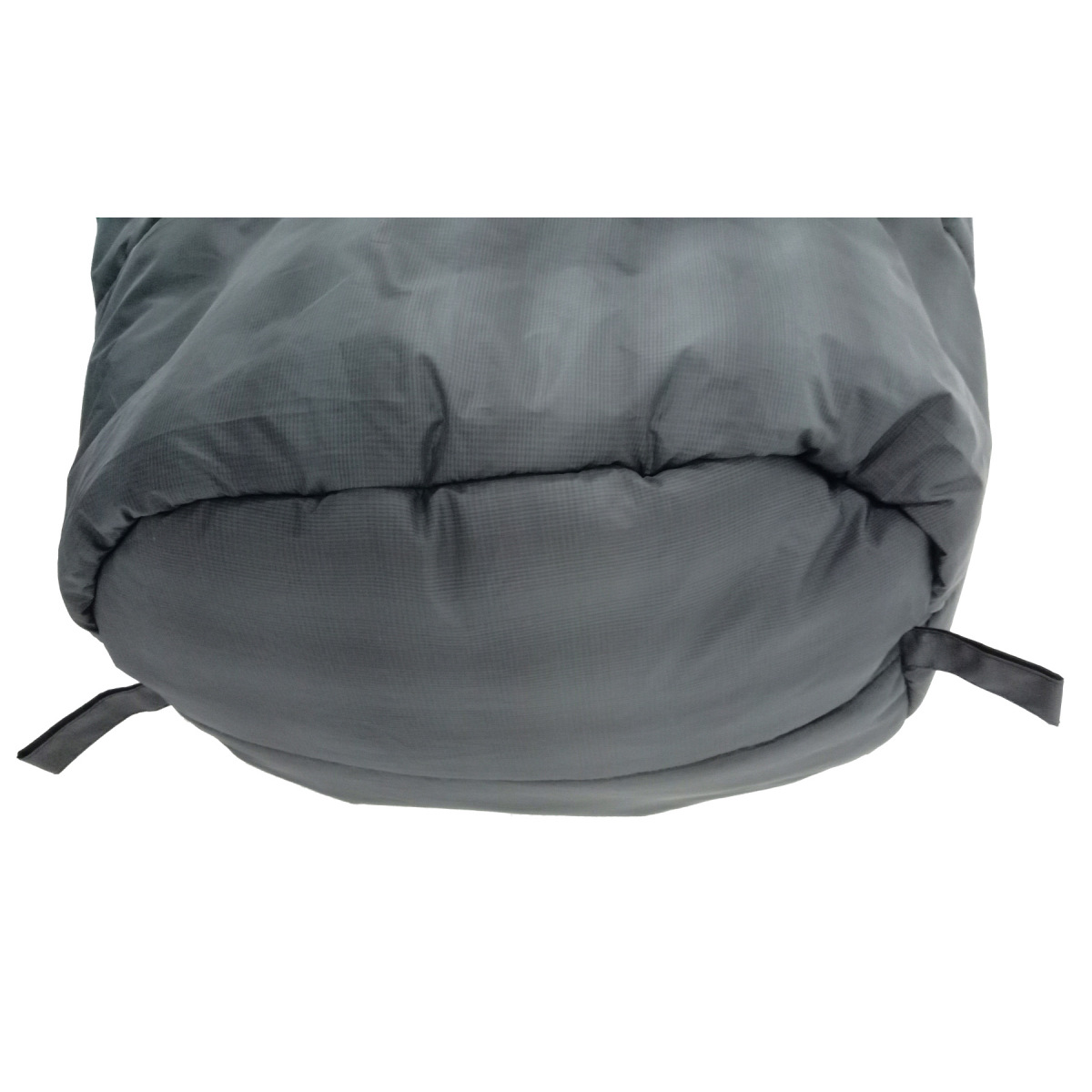 Крой типа мумия повторяет анатомию тела, обеспечивая лучшую теплоизоляцию, а увеличенный объем в зоне плеч и стоп придает комфорт. Для дополнительной защиты от холода спальник оснащен теплым воротником 360°, утепленной планкой вдоль молнии и регулируемым капюшоном с фиксатором. Двухсторонняя молния имеет защиту от ущемления, а внутри есть карман для ценных мелочей. В нижней части расположены петли для просушки.