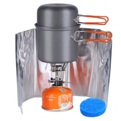 • Система "все в одному" — наявність пальника, посуду та захисту від вітру в одному комплекті для максимальної автономності.