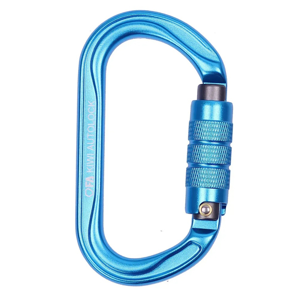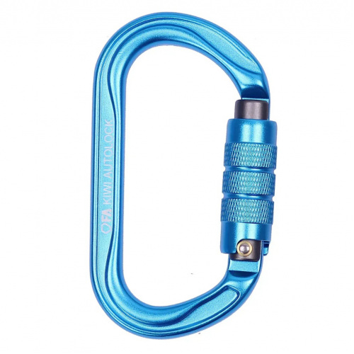F.A. Kiwi Autolock — овальний алюмінієвий карабін середнього розміру з автоматичною муфтою для роботи з блок-роликами, тандемами та натягування поліспастів. Симетрична овальна форма є найбільш універсальною, утримує приєднане спорядження в центрі карабіна та запобігає його зміщенню під навантаженням.