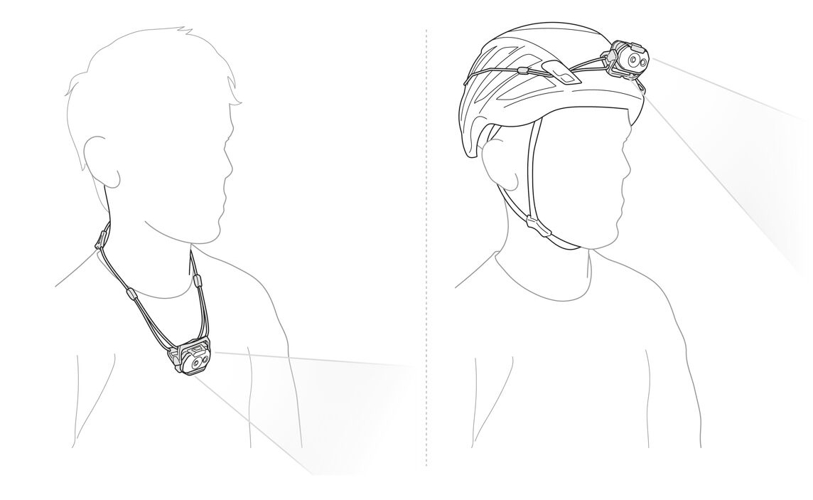 • Регульований нахил — можливість спрямувати промінь вперед при носінні на шиї або вниз при встановленні на шолом.