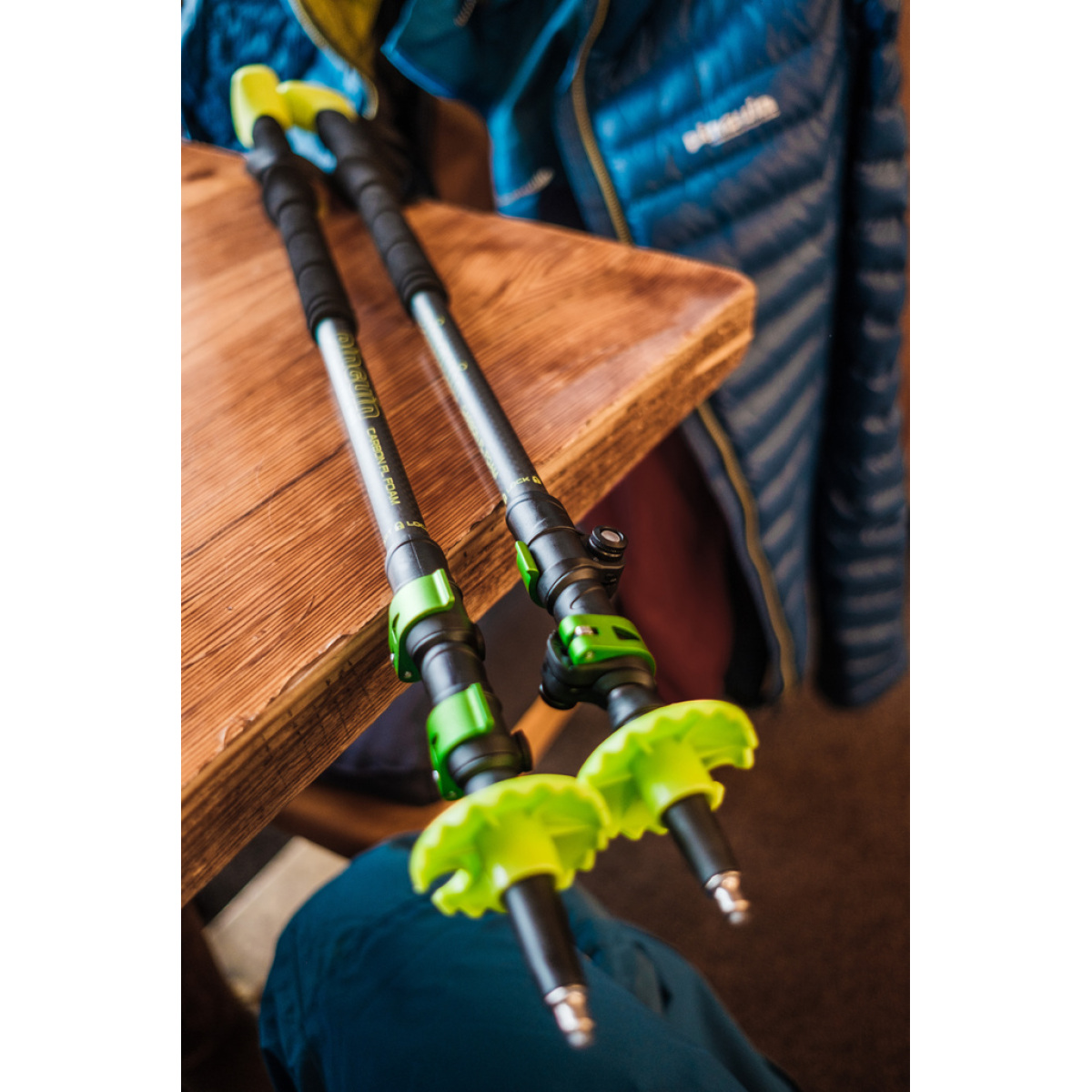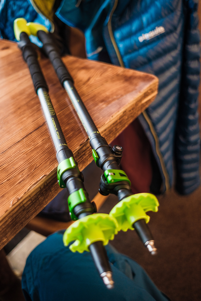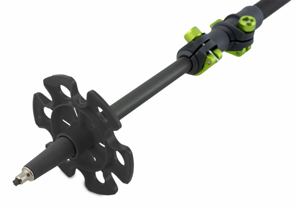 Секції фіксуються двома замками Fast Lock із важелями з дюралюмінію: регулювання довжини від 64 до 135 см займає кілька секунд без інструментів. Градуювання на нижніх сегментах дозволяє точно встановлювати довжину.