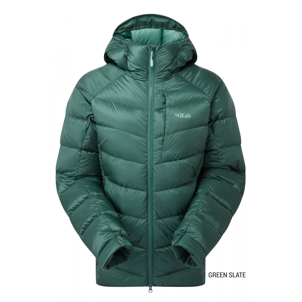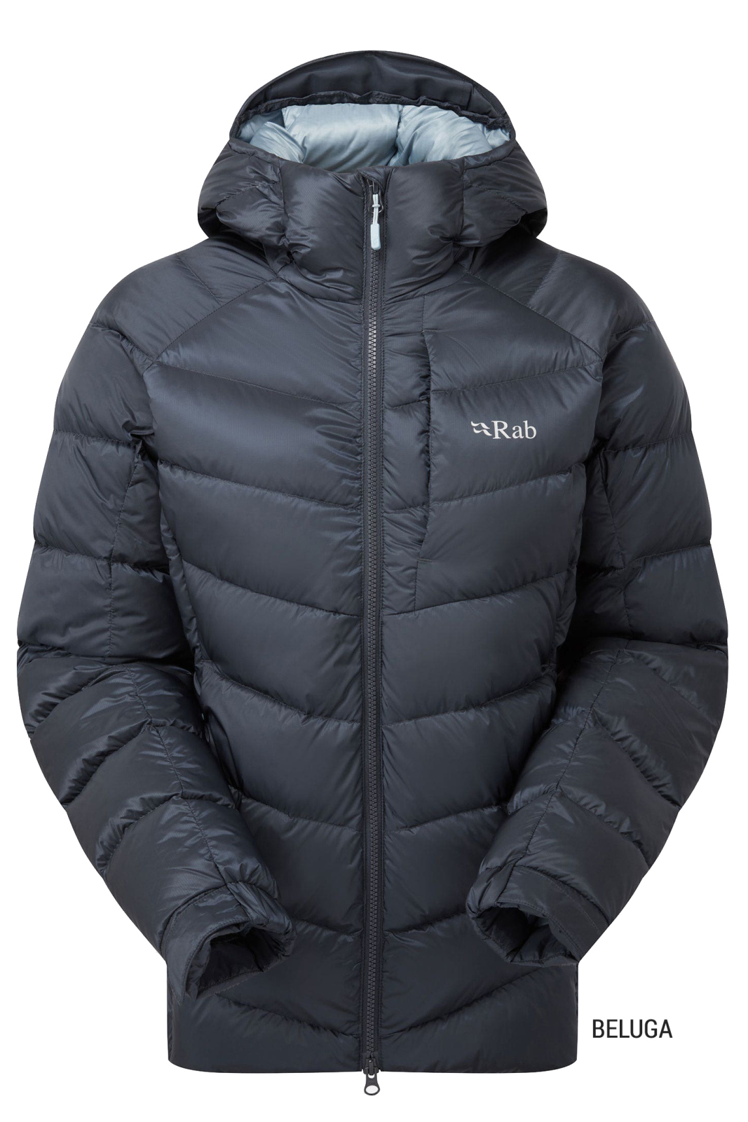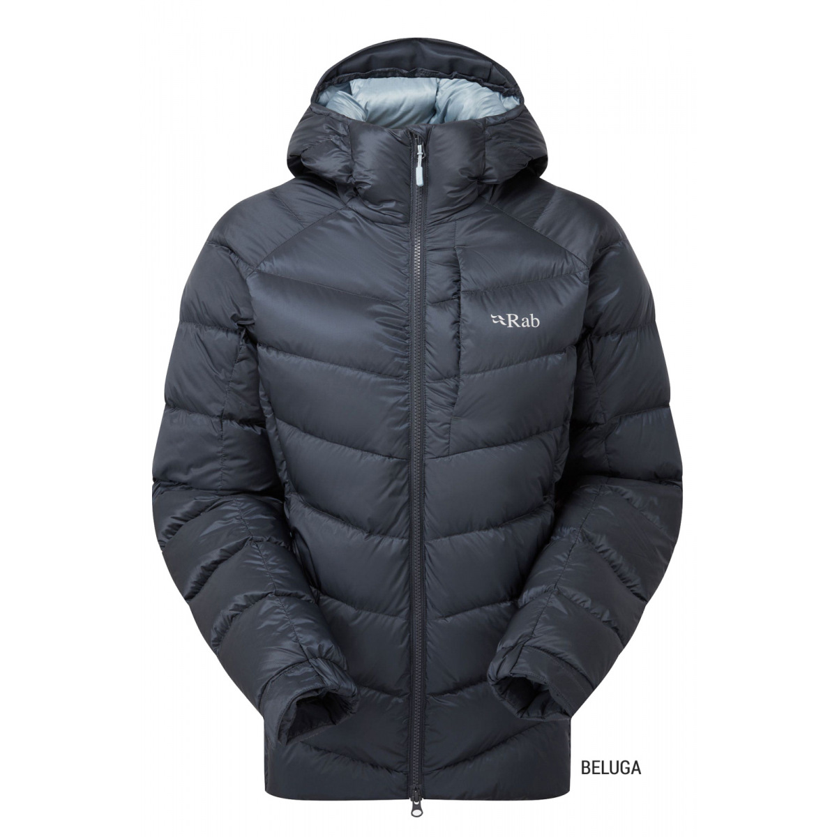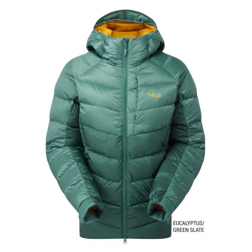 Rab Glaceon Pro Down Jacket — жіноча пухова куртка, створена для активного використання у горах узимку. Вона поєднує легкість, високу теплоізоляцію та компактність, завдяки чому підходить як для сходжень і альпінізму, так і для повсякденного носіння у холодну пору року в місті. Наповнювач із гідрофобного пуху 700FP швидко відновлює об'єм після стискання та ефективно зберігає тепло навіть у злегка вологих умовах, а зовнішня тканина Pertex® Quantum Pro забезпечує додатковий захист від вітру та опадів.