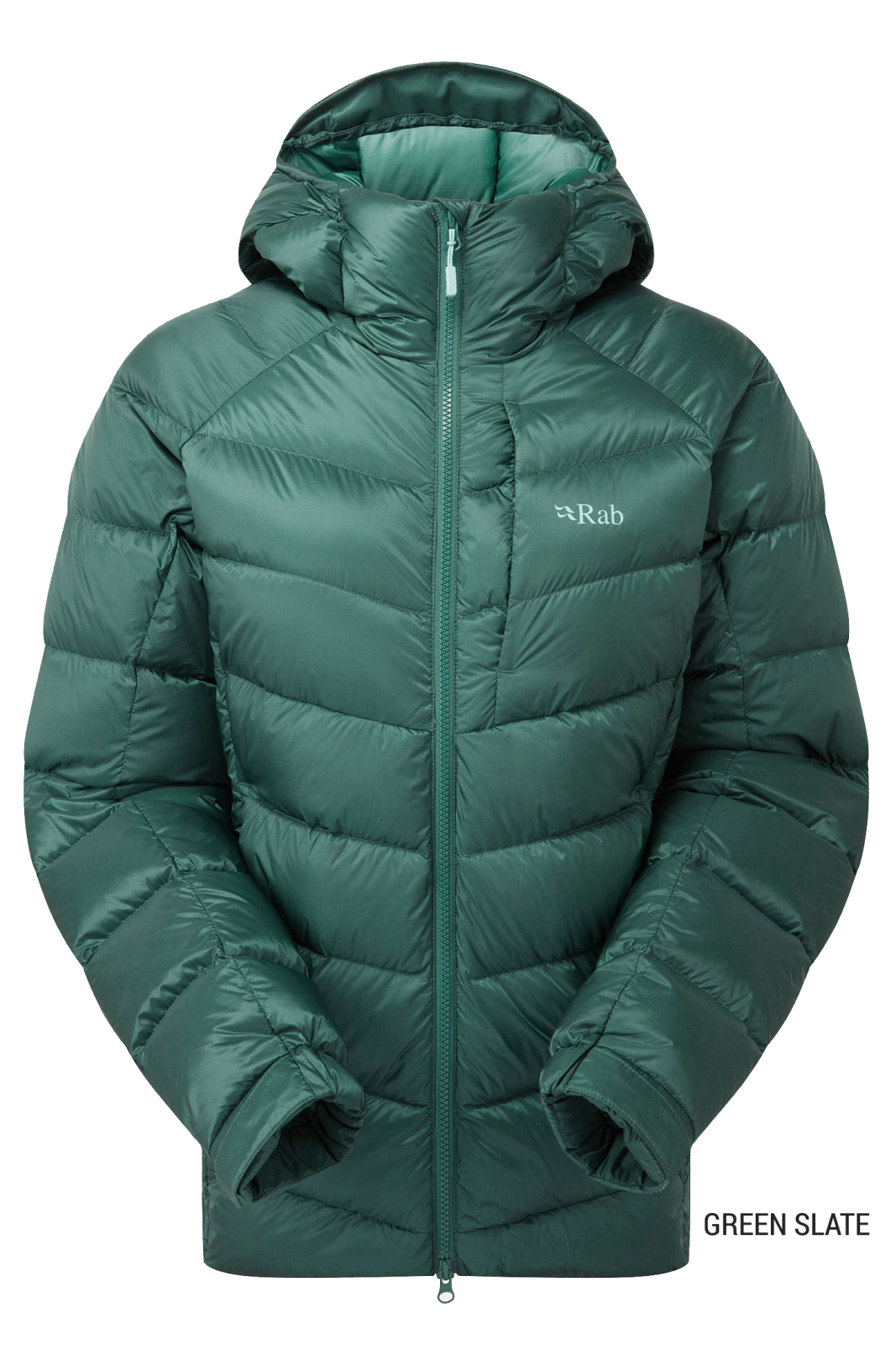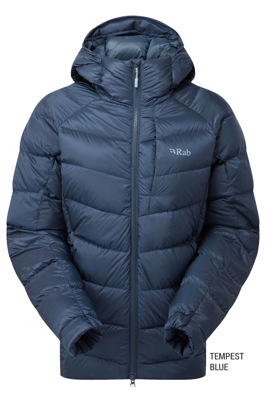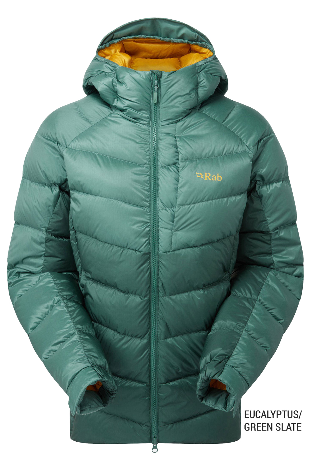 Rab Glaceon Pro Down Jacket — жіноча пухова куртка, створена для активного використання у горах узимку. Вона поєднує легкість, високу теплоізоляцію та компактність, завдяки чому підходить як для сходжень і альпінізму, так і для повсякденного носіння у холодну пору року в місті. Наповнювач із гідрофобного пуху 700FP швидко відновлює об'єм після стискання та ефективно зберігає тепло навіть у злегка вологих умовах, а зовнішня тканина Pertex® Quantum Pro забезпечує додатковий захист від вітру та опадів.