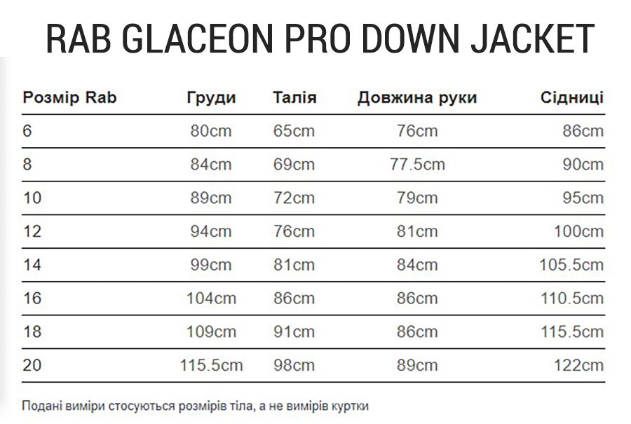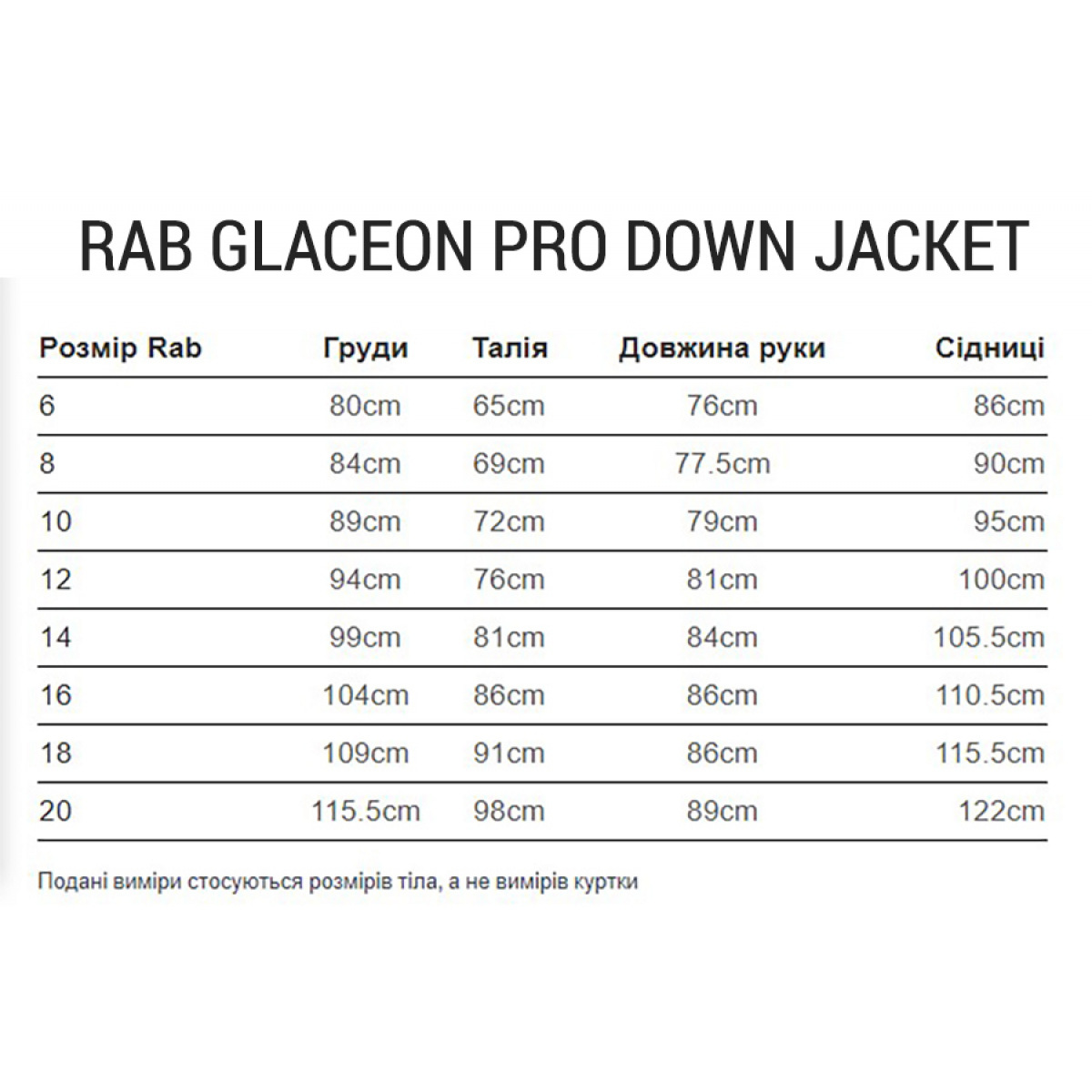 Технічні характеристики Rab Glaceon Pro Down Jacket