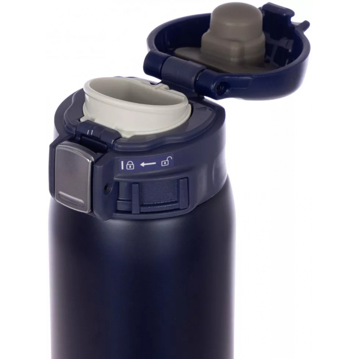 Кришка оснащена механізмом “Flip-open” з блокуванням від випадкового відкривання, а двоступеневе відкриття запобігає розбризкуванню конденсату під час натискання кнопки. Завдяки повітряному каналу в кришці рідина ллється плавно, без ривків і переливань.